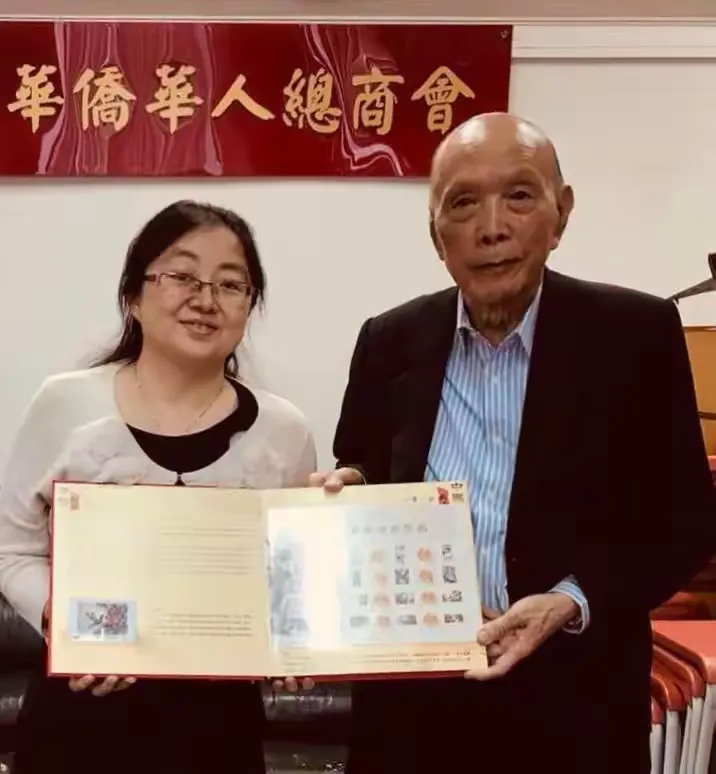 香港牡丹苑畫會主席曾莉向香港華僑華人總商會贈送了中國郵政出版的《曾莉郵集》,古會長代表商會接受了禮品